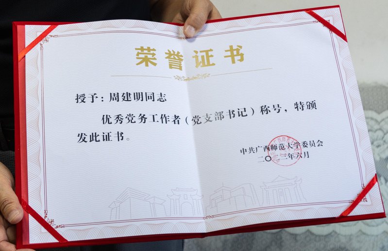 今年是周建明教授退休的第11个年头,年过七旬的他眼神明亮,精神饱满。虽已不在一线任教,但周建明老师不仅是学校“五老”宣讲团的成员,还是校离退休党委委员与校级教学督导,并担任历史文化与旅游学院退休党支部书记。2022年,历史文化与旅游学院退休党支部被评为自治区高校四星级党支部;2023年被评为学校先进基层党支部。他本人被评为2021-2023年度优秀党务工作者(党支部书记)。2022年还获得学校关心下一代工作工作荣誉奖。